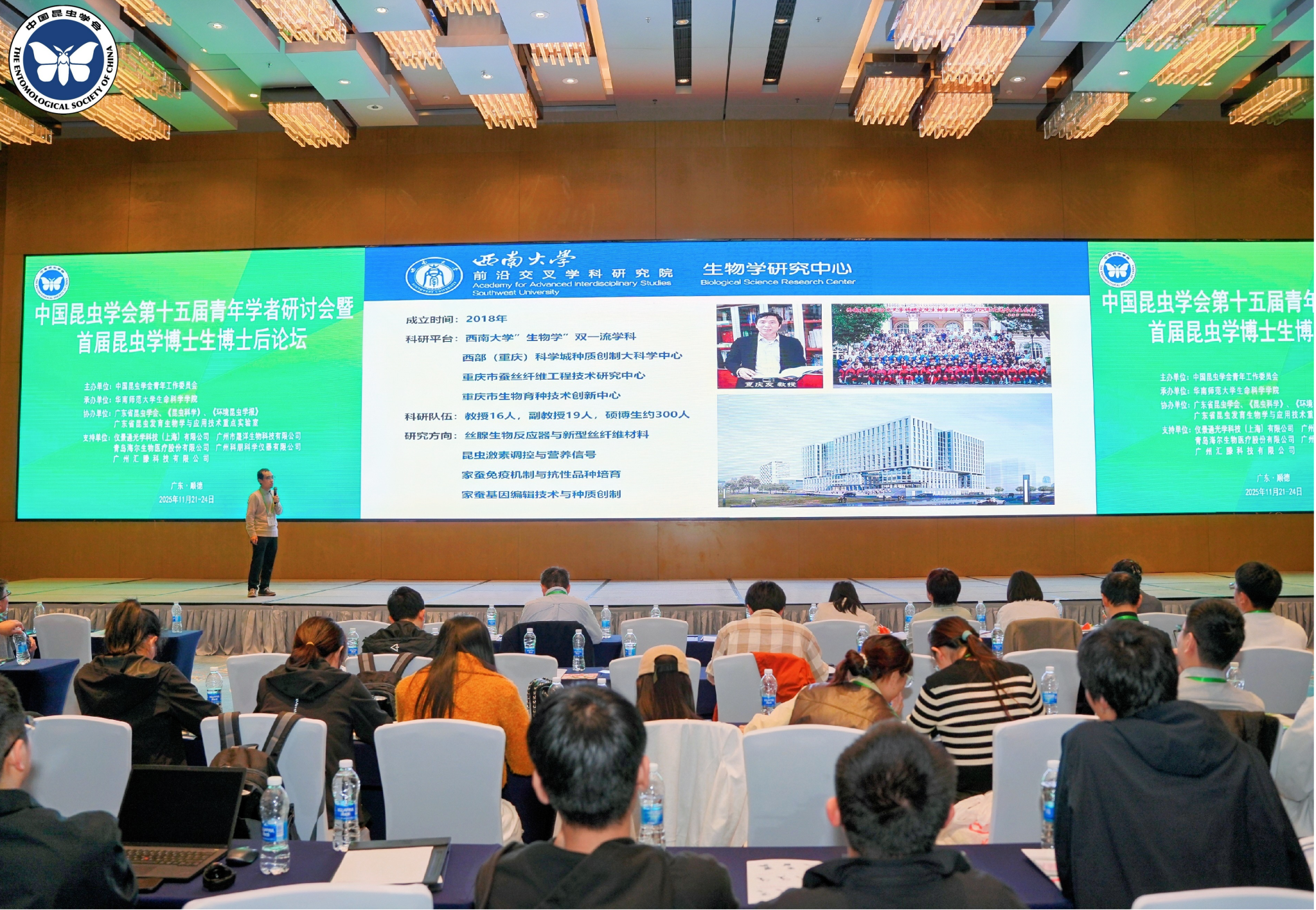 2025年11月21-24日,由中国昆虫学会青年工作委员会主办、华南师范大学生命科学学院承办的中国昆虫学会第十五届青年学者研讨会暨首届昆虫学博士生博士后论坛在广东顺德顺利召开。西南大学生物学研究中心的马三垣研究员、董照明副研究员、钱文良副教授、袁冬琴博士后参会,并作学术报告和参与圆桌论坛讨论。
