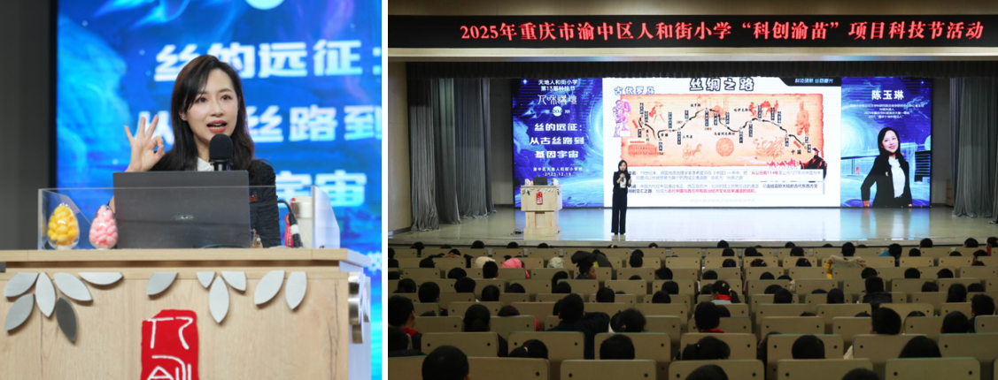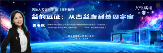 12月19日,西南大学前沿交叉生物学研究中心受邀走进重庆市人和街小学,为该校“科技节”带来一场重磅科普盛宴。作为该小学的科学副校长所在单位,中心继今年4月接待人和街三校区师生代表来中心研学后,再次深入联动,走进人和街小学校园,以一场别开生面的大型讲座,引领300余名小学师生踏上从古老丝绸之路到现代基因科学的奇妙征程。