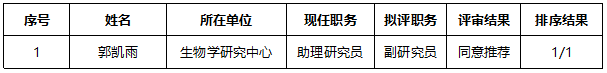 前沿交叉研究院生物学研究中心关于2025年专业技术职务评审结果的公示