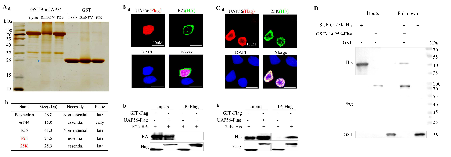 综上所述,本研究证实了杆状病毒的 25K 蛋白劫持宿主 UAP56 以促进病毒 mRNA 的核输出和感染。这些发现为“昆虫—杆状病毒”的互作机制提供了新的见解,强调了25K在杆状病毒感染中的重要作用。这项研究不仅加深了对杆状病毒转录与翻译机制的理解,也为抗病毒研究提供了潜在靶点。